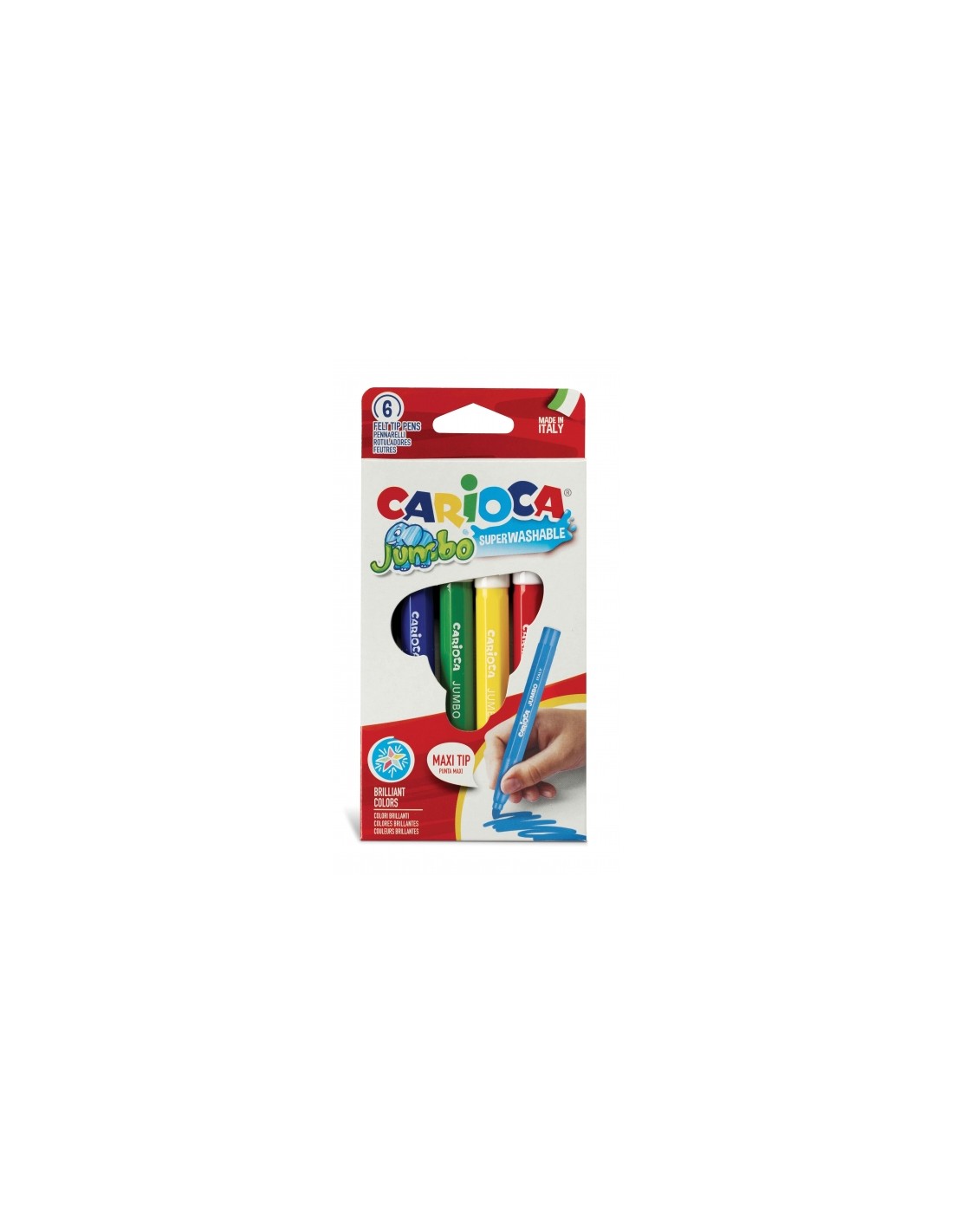 Carioca Pack de 6 Rotuladores Jumbo - Cuerpo Octogonal Maxi - Tinta Superlavable - Punta Maxi 6mm Bloqueada - Tapa Ventilada Características: -Pack de 6 rotuladores JUMBO -Cuerpo octogonal Maxi -Tinta superlavable -Punta Maxi 6 mm, bloqueada y con tapa ventilada -Made in Italy
