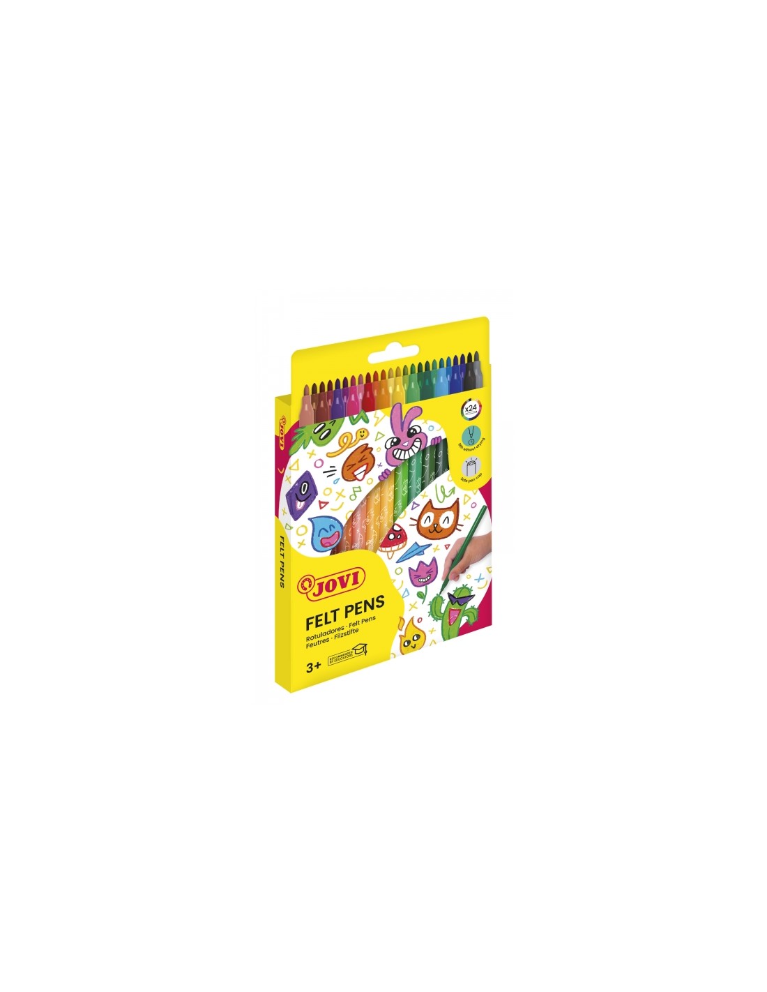 Jovi Felt Pens Estuche de 24 Rotuladores - Amplia Variedad de Tonos - Tinta de Gran Fijacion - Punta de 3mm - Capuchon de