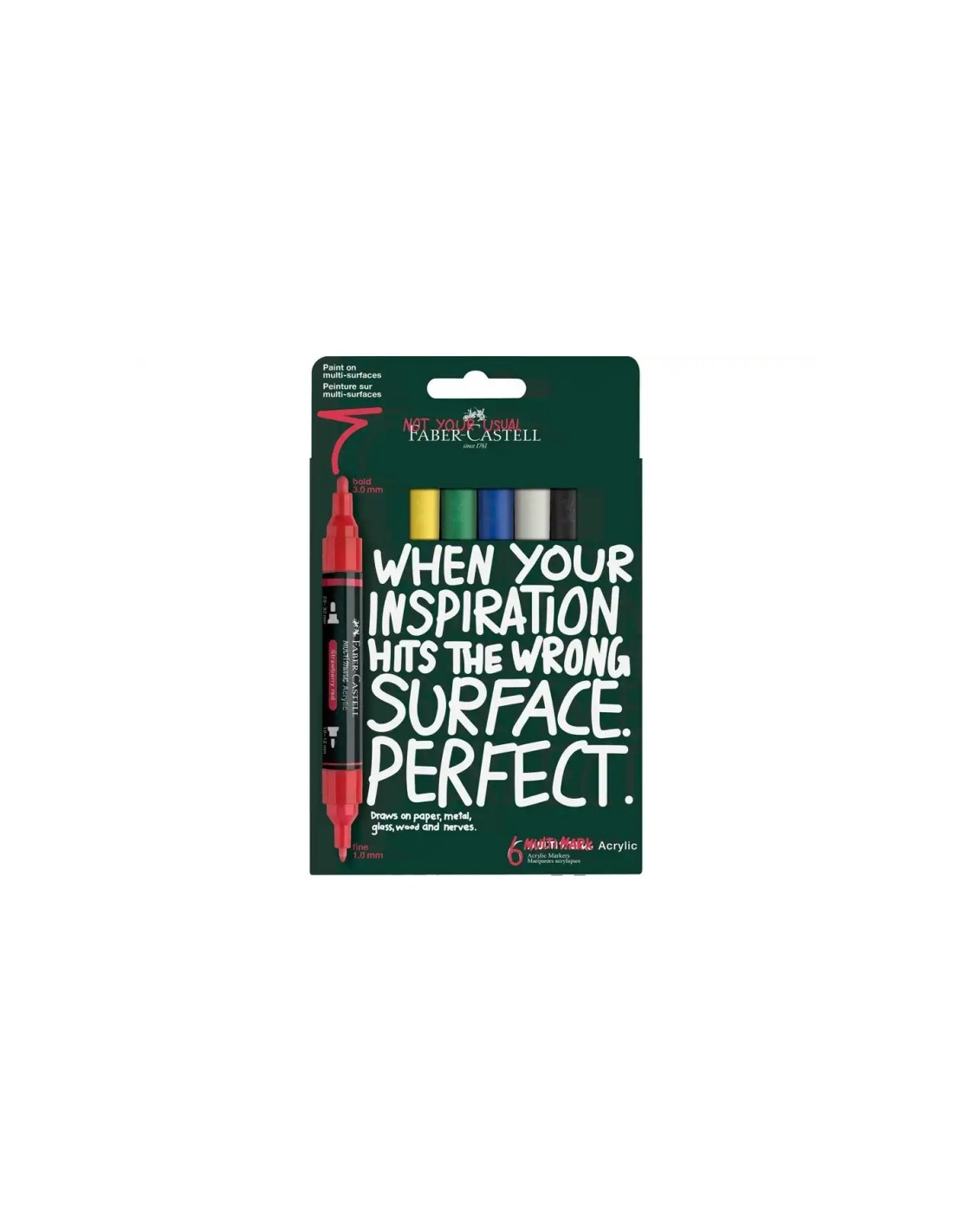 Faber-Castell Multimark Acrylic Pack con 6 Rotuladores Acrilicos Doble Punta - Puntas Redondas de 1mm y 3mm - Tinta Acrilica