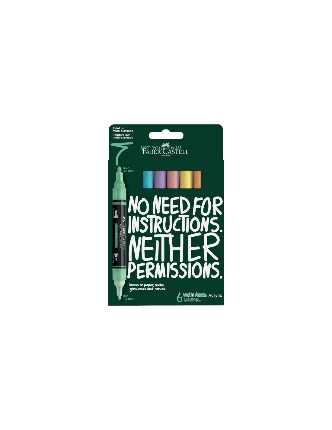 Faber-Castell Multimark Acrylic Pack con 6 Rotuladores Acrilicos Doble Punta - Puntas Redondas de 1mm y 3mm - Tinta Acrilica