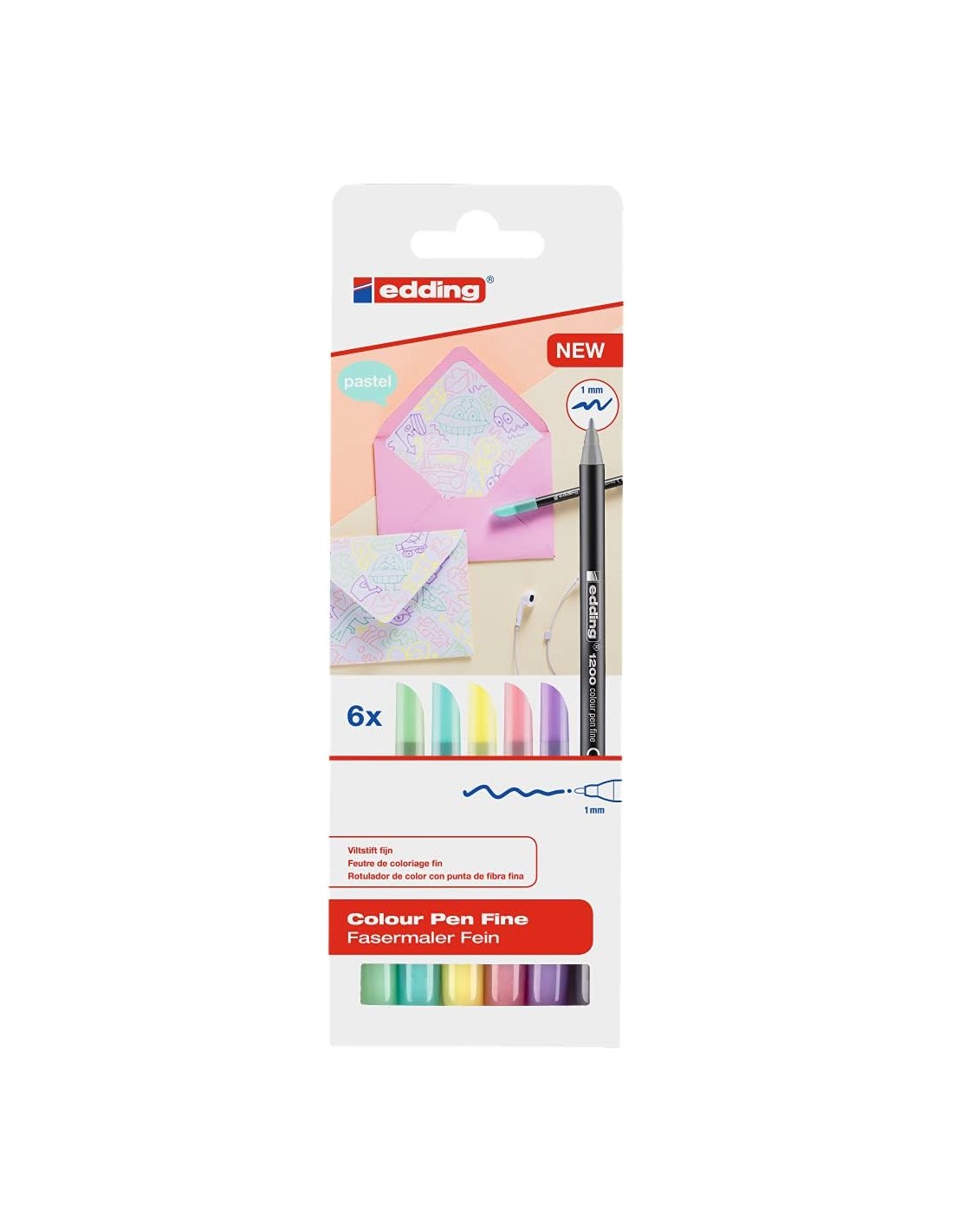 Edding 1200 Pastel Pack de 6 Rotuladores - Punta Redonda - Trazo 1mm - Tinta con Base de Agua - Colores Pastel Surtidos