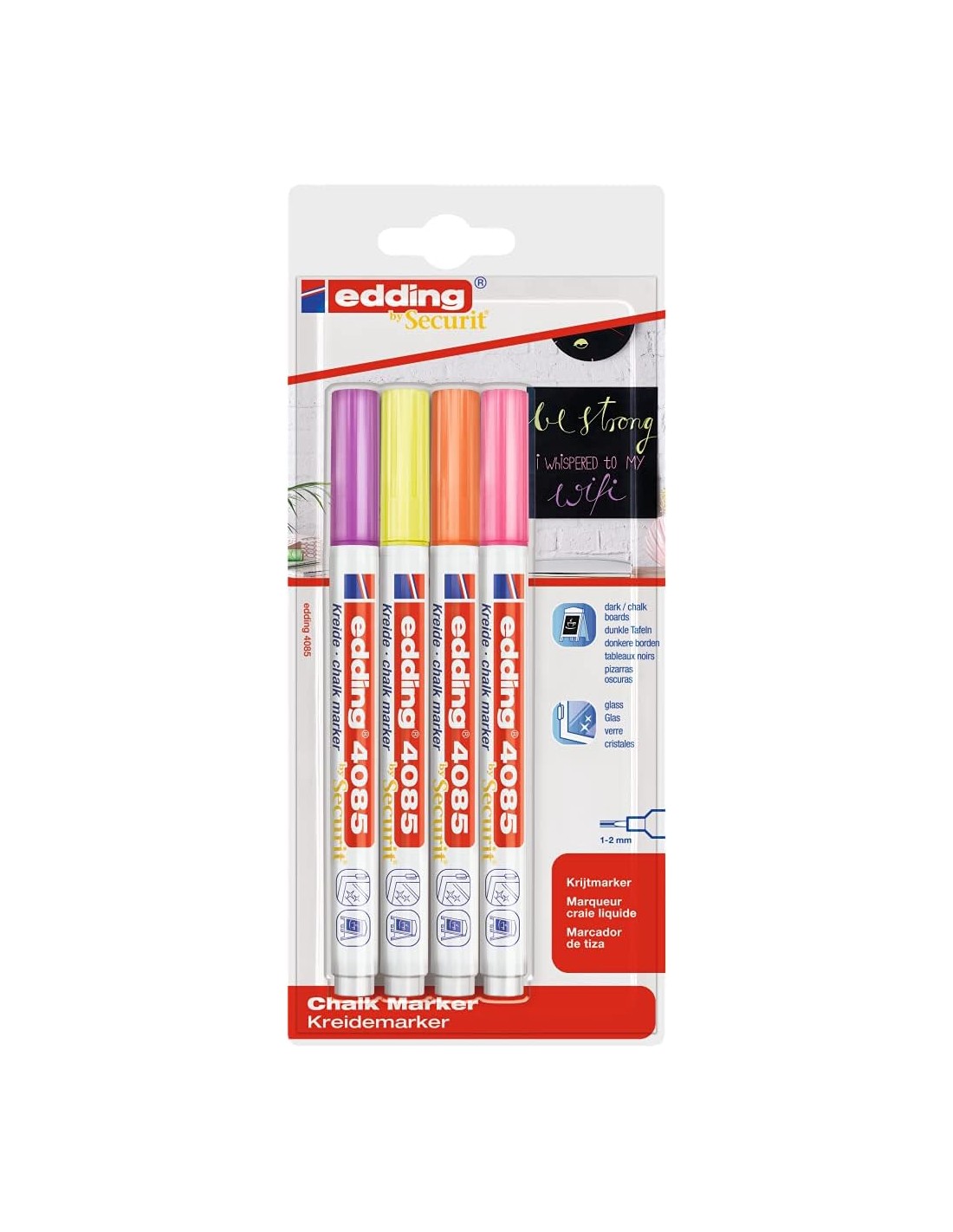 Edding 4085 Neon Pack de 4 Rotuladores de Tiza Liquida - Punta Redonda - Trazo 1-3mm - Olor Neutro - Colores Frambuesa