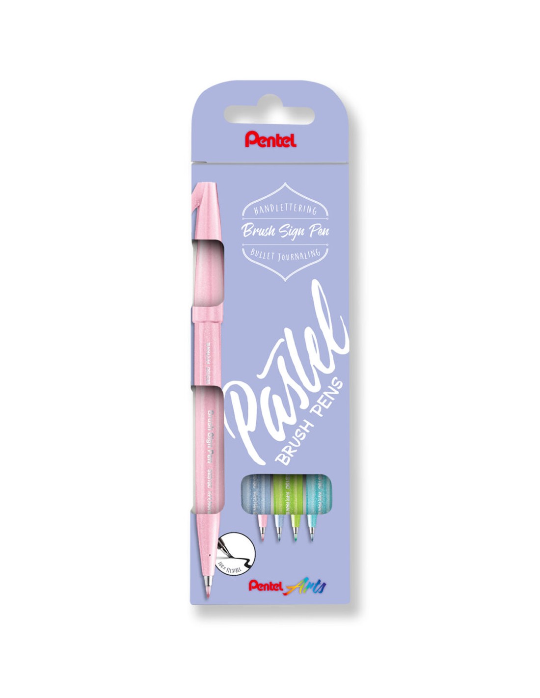 Pentel Brush Sing Pen Pastel Pack de 4 Rotuladores con Punta de Pincel - Lineas Finas o Gruesas dependiendo de la Presion -