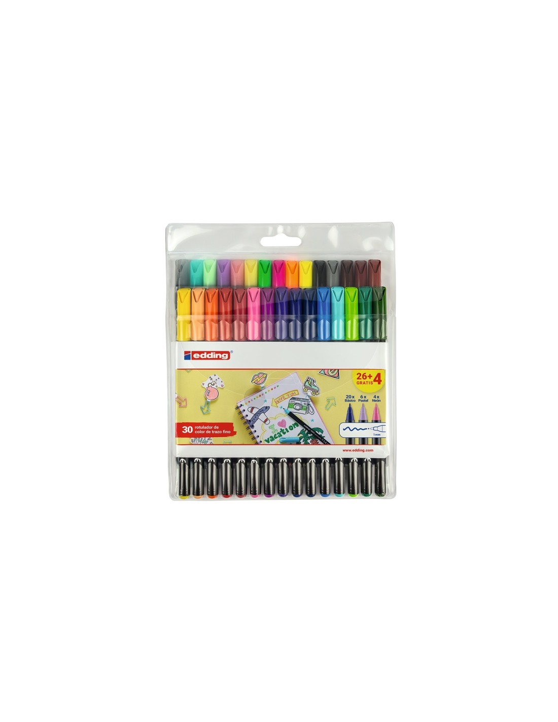 Edding 1200 Pack de 30 Rotuladores - Punta Redonda - Tinta con Base de Agua - Colores Clasicos-Neon y Pastel Surtidos