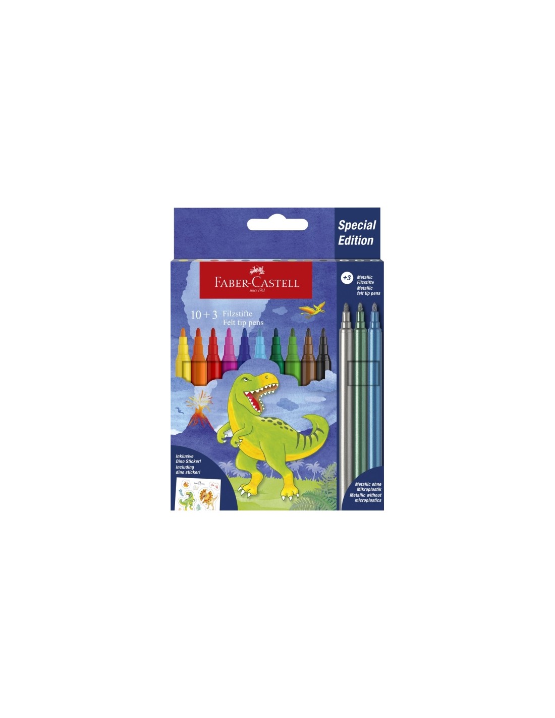 Faber-Castell Edicion Dinosaurios Pack de 13 Rotuladores de Colores - 10 Colores Clasicos-3 Colores Metalizados - Incluye