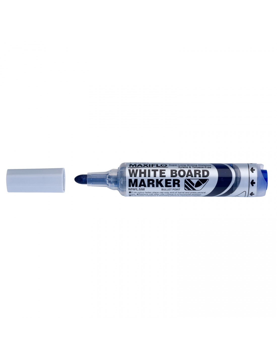 Rotulador para pizarra blanca Maxiflo MWL5M con tinta líquida e innovador sistema de bombeo para la regulación del flujo de tinta. La tinta fresca y los colores fuertes se pueden activar con un botón. Hasta 3 veces más rendimiento de escritura que los marcadores de pizarra convencionales. Punta duradera y resistente. También es posible escribir por encima de la cabeza sin ningún problema. El Maxiflo es un producto de la serie Pentel Recycology: Los productos Pentel Recycology son productos ecológicos que han sido fabricados con más del 50 de materiales reciclados (todos los porcentajes se refieren al peso total de los productos menos los consumibles relevantes para el producto). Características: -Punta redonda en un estuche grueso -Ancho de línea: 2,5 mm -Color de escritura: Azul