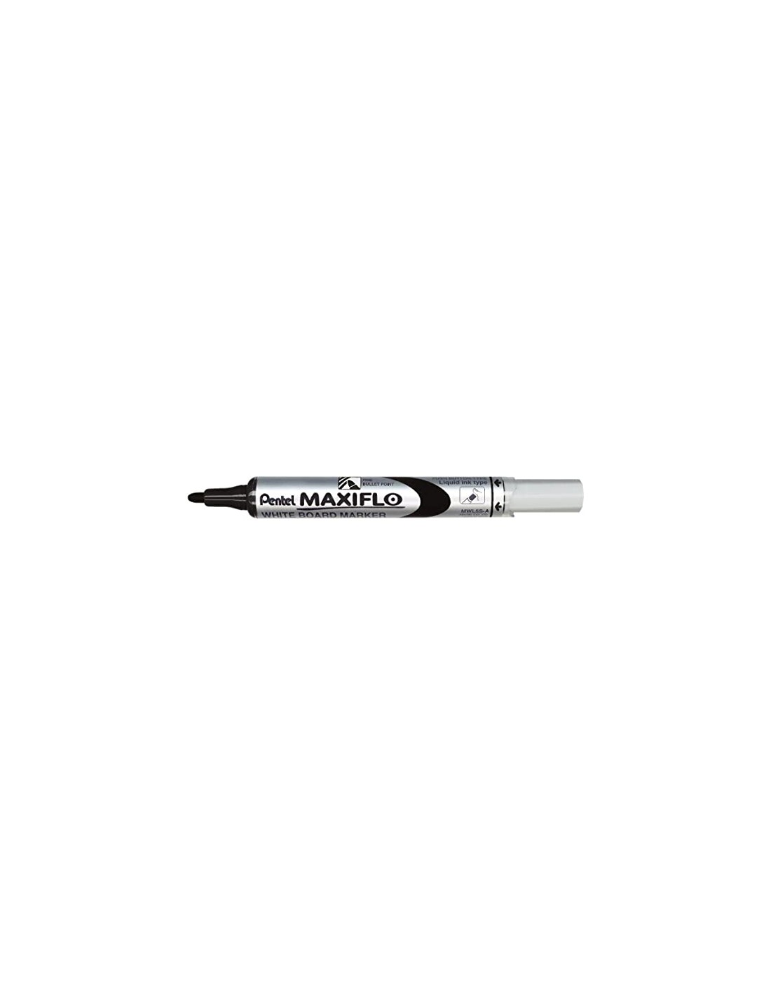 Rotulador para pizarra blanca Maxiflo MWL5S con tinta líquida e innovador sistema de bombeo para la regulación del flujo de tinta. La tinta fresca y los colores fuertes se pueden activar con un botón. Hasta 3 veces más rendimiento de escritura que los marcadores de pizarra convencionales. Punta duradera y resistente. También es posible escribir por encima de la cabeza sin ningún problema. El Maxiflo es un producto de la serie Pentel Recycology: Los productos Pentel Recycology son productos ecológicos que han sido fabricados con más del 50 de materiales reciclados (todos los porcentajes se refieren al peso total de los productos menos los consumibles relevantes para el producto). Características: -Punta de bala en una carcasa estrecha -Ancho de línea: 2 mm -Color de escritura: Negro