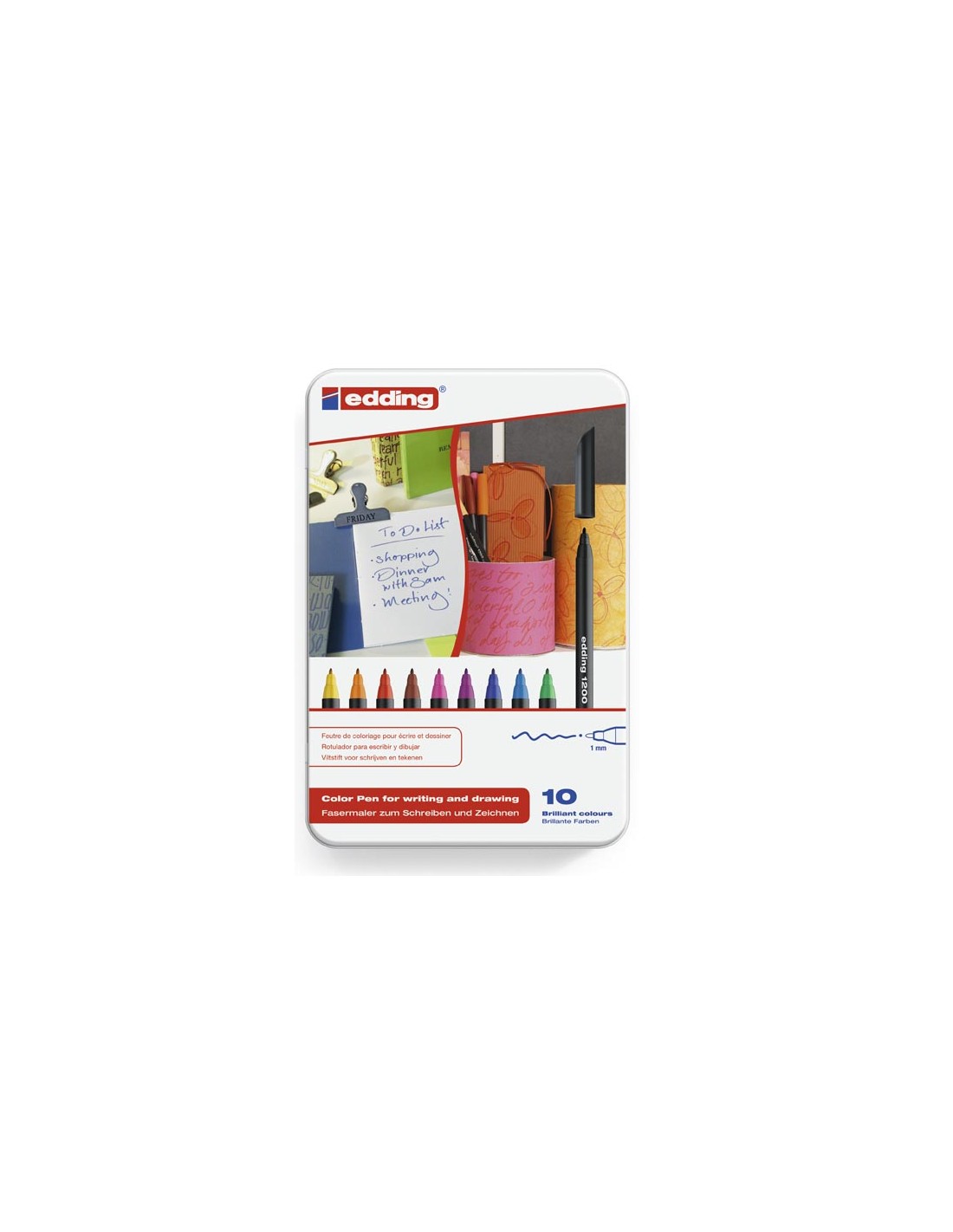 Edding Caja de Metal con 10 Rotuladores 1200 - Punta Redonda - Trazo 1mm - Tinta con Base de Agua