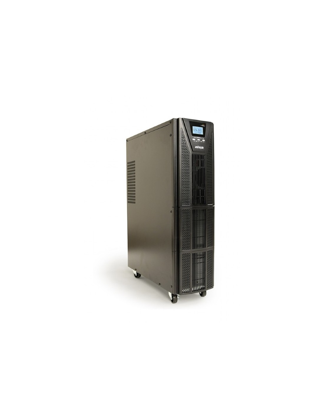 Gembird EG-UPSO-6000 Sistema de Alimentacion Ininterrumpida SAI/UPS 6 kVA 6000 W. Doble Conversion (en Linea) y 6 Salidas AC. Especificaciones: Características: -Topología UPS: Doble conversión (en línea) -Capacidad de potencia de salida (VA): 6 kVA -Potencia de salida: 6000 W -Forma de onda: Seno -Voltaje de entrada de operación (min): 176 V -Voltaje de entrada de operación (max): 288 V -Frecuencia de entrada: 40 - 70 Hz -Voltaje de operación de salida (min): 208 V -Voltaje de operación de salida (max): 240 V -Regulación de la frecuencia de salida: 45/65 Hz -Regulación automática de voltaje (AVR): Sí -Nivel de ruido: 55 dB -Funciones de protección de poder: Sobrecarga, Descarga excesiva, Sobrecarga, Cortocircuito Puertos e Interfaces: -Tipo de salida AC: C13 acoplador, Terminal -Cantidad de salidas AC: 6 salidas AC Batería: -Tecnología de batería: Sealed Lead Acid (VRLA) -Capacidad de la batería: 7 Ah -Voltaje de la pila: 12 V -Numero de baterías soportadas: 16 -Tiempo típico de respaldo a media carga: 30 min -Tiempo de recarga de la batería: 8 h -Arranque en frío: Sí Diseño: -Factor de forma: Torre grande -Color del producto: Negro -Tipo de visualizador: LCD -Indicadores LED: Sí Condiciones ambientales: -Intervalo de temperatura operativa: 0 - 40 C -Intervalo de humedad relativa para funcionamiento: 20 - 90 Detalles técnicos: -Cumplimiento de sostenibilidad: Sí -Certificados de sostenibilidad: CE, RoHS Peso y dimensiones: -Ancho: 310 mm -Profundidad: 685 mm -Altura: 941 mm -Peso: 53000 g