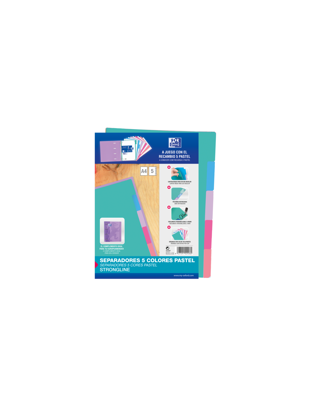 Oxford Strongline A4 Separadores 5 Posiciones - 4 Taladros - Cartulina 200gr - Colores Surtidos