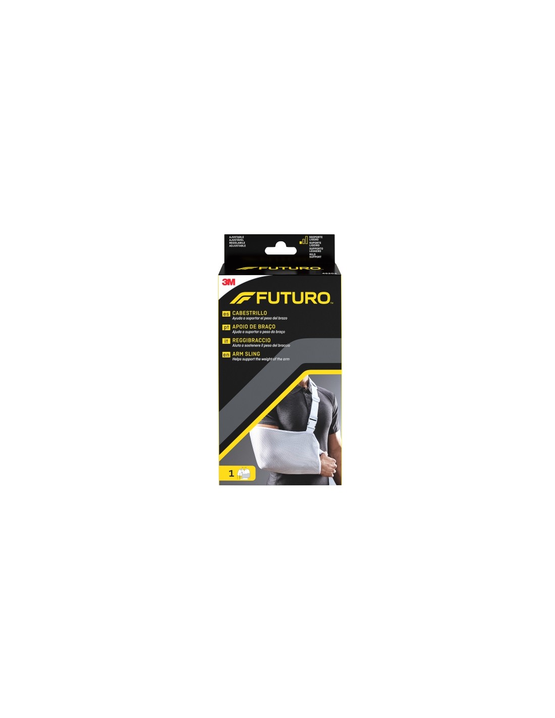 Ayuda a soportar el peso del brazo. Apertura r pida con una sola mano. La c moda almohadilla amortigua el hueso y los m ºsculos del hombro. Cierre ajustable para un ajuste personalizado. El cabestrillo FUTURO te echa una mano para mantener el brazo en la posici n ptima y as acelerar la curaci n. La hombrera acolchada y ajustable sujeta el bolsillo de sost n para un ajuste c modo y personalizado que mantiene el brazo en su sitio y minimiza los movimientos. Con su c moda hebilla en la correa, ajustable f cilmente con una sola mano, el cabestrillo FUTURO te permite seguir de manera confortable con tu d a a d a al 100 . Caracter sticas: -Ayuda a soportar el peso del brazo -Ideal para proporciona soporte durante la recuperaci n de un hueso fracturado, esguince, cirug a o como soporte general para el brazo -Almohadilla que amortigua la presi n sobre el hombro -Trabilla para el pulgar que mantiene la mano en la posici n idealHebilla de apertura r pida -Material transpirable -Ajustable -Recomendado por nuestro panel de expertos formado por ingenieros y profesionales m dicos -Destinazione d\ uso: Ayuda a sujetar el brazo -Adecuado para el brazo izquierdo y para el brazo derecho Especificaciones: -Color: Blanco -Contenido: Paquete de 1 -Material: Poli ster, espuma de poliuretano, pl stico acetal (POM), pVC -Nivel de soporte: Soporte ligero -Parte del cuerpo: Brazo -Tama o: Ajustable -Tipo: Cabestrillo
