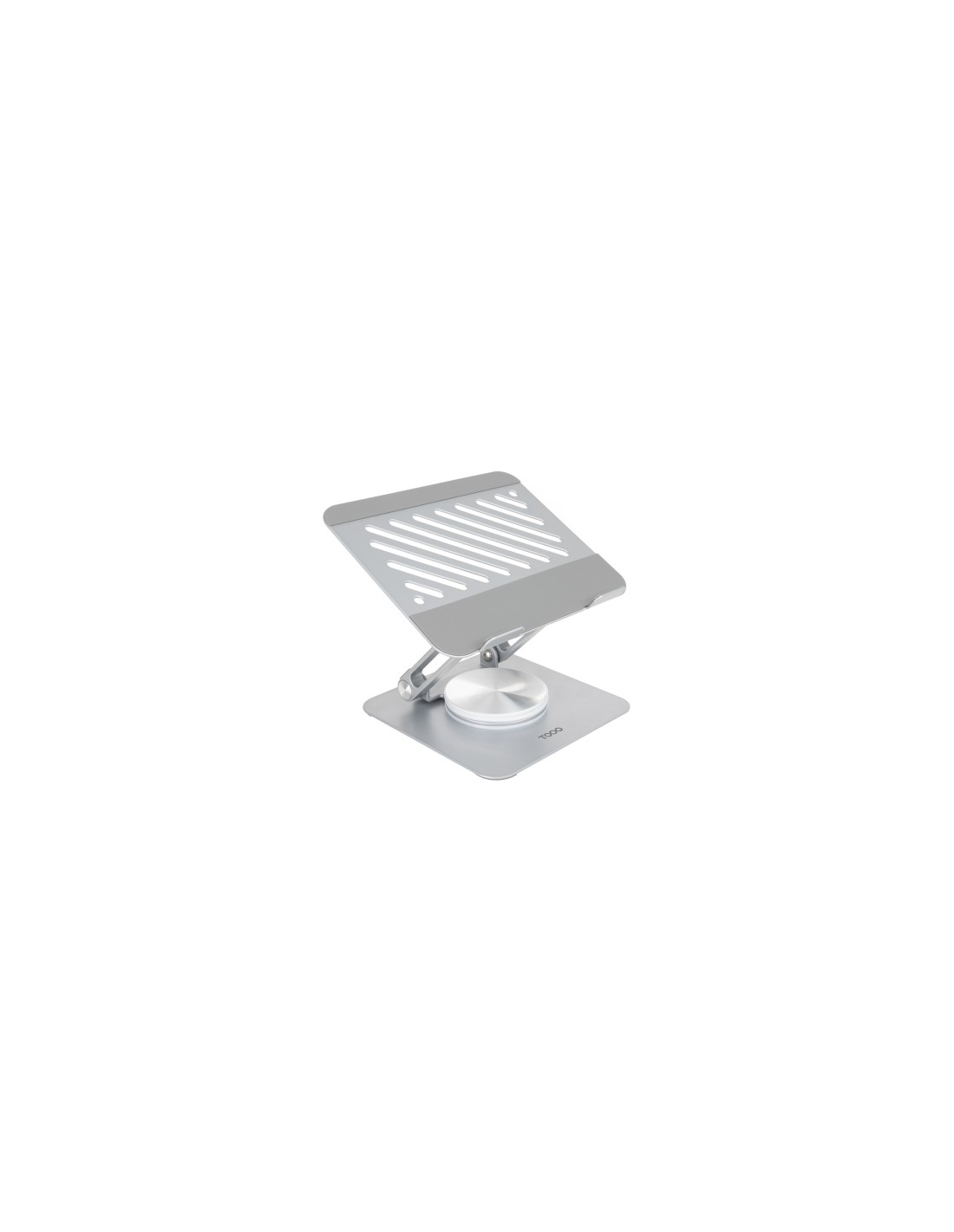 Tooq Soporte para Portatil hasta 13 - Rotacion 360 - Plegable y Portatil Especificaciones: -Dise o con rotaci n de 360 y ajuste multi ngulo: permite una rotaci n completa de 360 y un rango de ajuste de altura y ngulo desde 30 mm hasta 190 mm. -Plegable y port til: este soporte es completamente plegable y compacto, lo que facilita su almacenamiento en un bolso, mochila o maleta durante los viajes. Tama o plegado: 166,3 137,8 34,3 mm. -Estable y antideslizante: incorpora grandes almohadillas de silicona antideslizantes, que protegen contra ara azos y evitan deslizamientos. La capacidad m xima de carga es de 0,8 kg. -Amplia compatibilidad: el soporte es compatible con dispositivos de hasta 13 pulgadas. -Dise o ventilado: los orificios de ventilaci n aseguran una circulaci n ptima del aire, previniendo el sobrecalentamiento del dispositivo. -Color: Plata. -Material: fabricado en acero de carbono. -Medidas del producto: 166,3 137,8 34,4 mm. -Peso neto: 0,538 kg - Peso bruto: 0,600 kg. -Medidas del embalaje (aprox.): 140 190 40 mm. Contenido del Paquete -1 x Soporte -1 x Kit ajuste