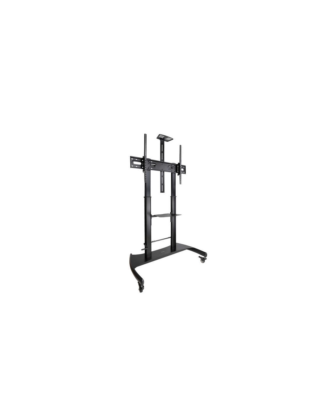 Tooq Ares Soporte de Suelo con Ruedas con Regulacion de Altura para Pantallas 60-100 Especificaciones: -Pantallas soportadas: 60-100 -Compatible con VESA: M ximo 1000x600. M nimo 400x400 -Peso m ximo soportado de pantalla: 100 kg - ngulo de inclinaci n: 5 /-10 -Regulaci n de altura telesc pica con manivela -Bandeja para reproductor/DVD y bandeja superior regulable para webcam -Rango de ajuste de altura del soporte: 1240-1640 mm -Altura m xima con bandeja superior: 2320 mm -Medida de bandejas: Inferior 430x335 mm. Superior 285x150 mm -Distancia entre ruedas: 1220x710 mm -Ruedas con sistema de bloqueo -Color: Negro -Peso neto: 39,8 kg. Peso bruto: 44,20 kg -Medidas del embalaje: 1176x446x345 mm Contenido del Paquete -1 x Soporte con dos bandejas -1 x Kit montaje (incluye herramientas) -1 x Manual de instalaci n