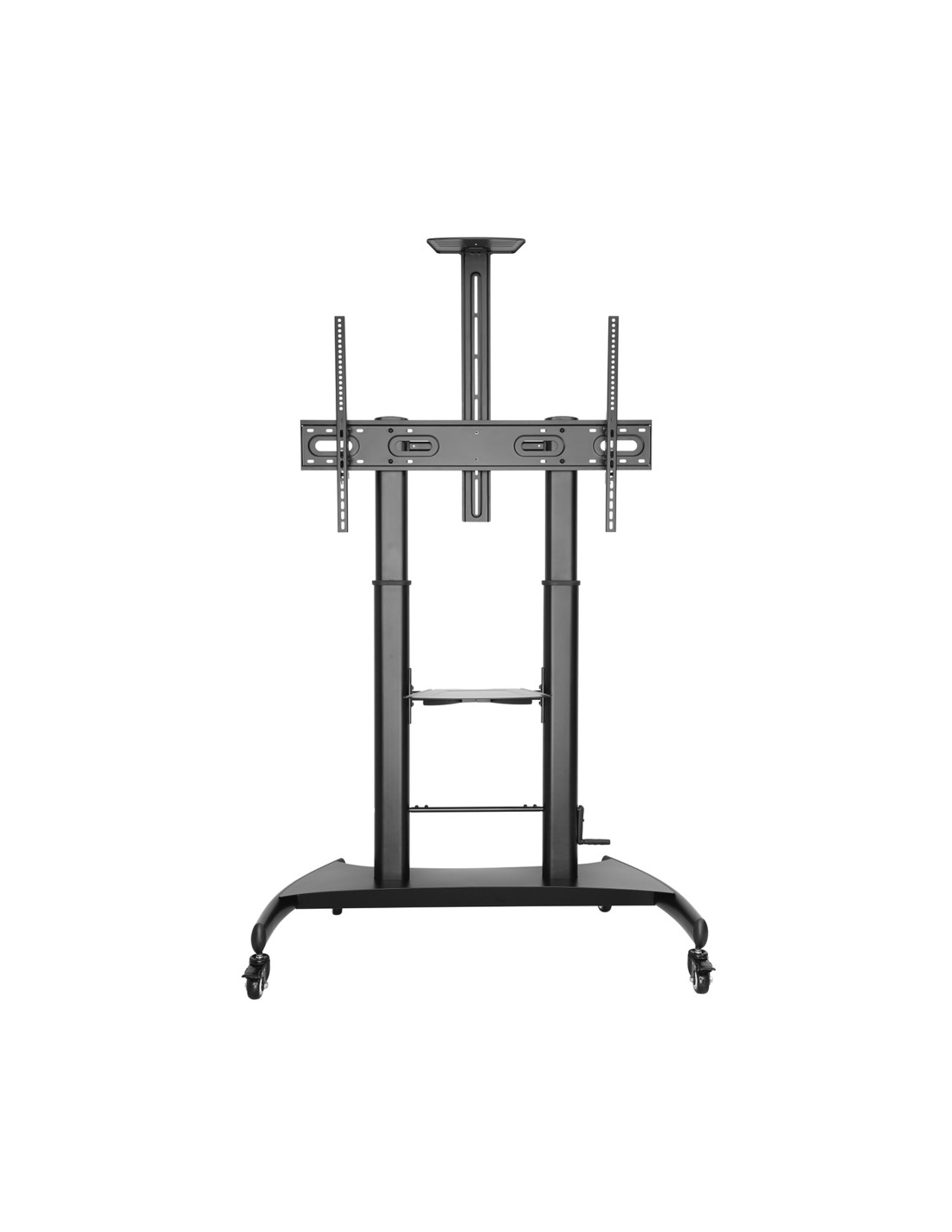 Aisens Soporte de Suelo ECO con Ruedas y Manivela - Bandeja para DVD y Soporte de Camara para Monitor/TV - Hasta 100Kg - De 60 a 100 Pulgadas. Características: -Soporte de suelo eco con rueda y manivela, bandeja para DVD y soporte de cámara para monitor/TV de 60 -100 -Fabricado con acero de alta resistencia y pintado con pintura electrostática para un acabado perfecto. -Compatible con la mayoría de los modelos de televisor Samsung gracias a los accesorios especiales que incluye en el kit de montaje. -VESA Máximo: 1000x600mm (Compatible con VESA de 200 200, 400 200, 300 300, 400 400, 600 400, 800 400, 800 600, 1000x600mm) -Este soporte cuenta con un sistema de ajuste de altura de TV con manivela permitiendo ajustar la altura de TV sin esfuerzo. -Carga Máxima: 100kg -Angulo de Inclinación: -10º / 5º -Altura máxima del soporte: 2320mm -Rango de ajuste para la altura del soporte TV: ajustable entre 1240 y 1640mm -Tamaño de bandeja DVD: 335 x 430mm -Tamaño de soporte de cámara: 150 x 285mm con altura ajustable -Tamaño máximo de separación ruedas: 710 x 1220mm -Color: Negro Contenido: -1 x Soporte de suelo para monitor/TV -1 x Kit de montaje (No incluye herramientas) -1 x Manual de instrucciones multi idioma