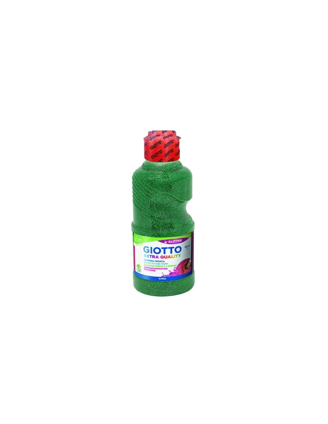 T mpera Giotto lista para el uso. Caracter sticas: -Pintura a base de agua -Pigmentos de alta calidad para m xima cobertura, inocuos y seguros -Colores brillantes, f ciles de usar y mezclar -Pintura homog nea, s lida a la luz -Secado r pido -Lavable de las manos con agua y jab n -Efecto chispeante -Botella endurecida. -Tap n rojo medidor anti-desperdicio. -250ml.