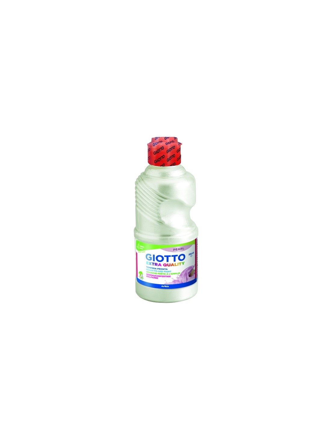 T mpera Giotto lista para el uso. Caracter sticas: -Pintura a base de agua -Pigmentos de alta calidad para m xima cobertura, inocuos y seguros -Colores brillantes, f ciles de usar y mezclar -Pintura homog nea, s lida a la luz -Secado r pido -Lavable de las manos con agua y jab n -Efecto pearl-glow -Botella endurecida. -Tap n rojo medidor anti-desperdicio. -250ml.