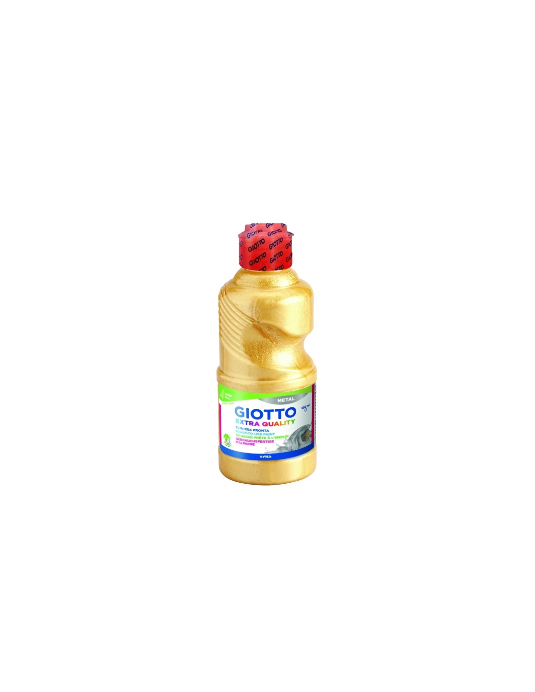T mpera Giotto lista para el uso. Caracter sticas: -Pintura a base de agua -Pigmentos de alta calidad para m xima cobertura, inocuos y seguros -Colores brillantes, f ciles de usar y mezclar -Pintura homog nea, s lida a la luz -Secado r pido -Lavable de las manos con agua y jab n -Efecto de metal -Botella endurecida. -Tap n rojo medidor anti-desperdicio. -250ml.