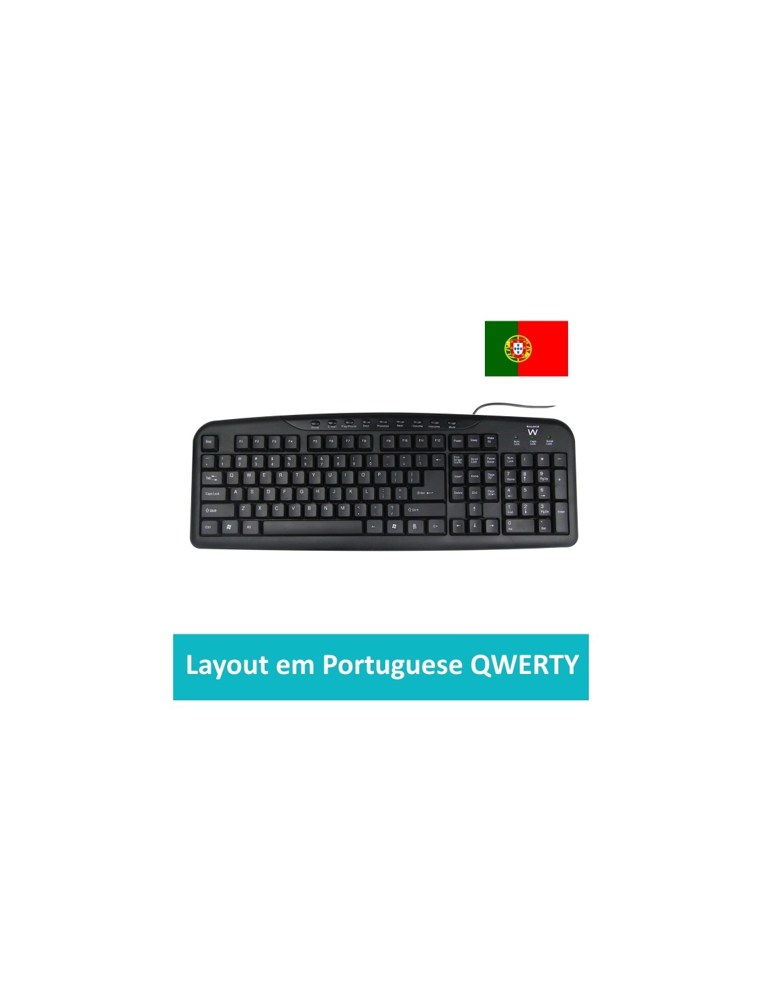 Ewent Teclado con Cable USB - Disposicion Portuguesa QWERTY PT - Plastico ABS - Teclas Silenciosas - Cable de 1.2m - Color