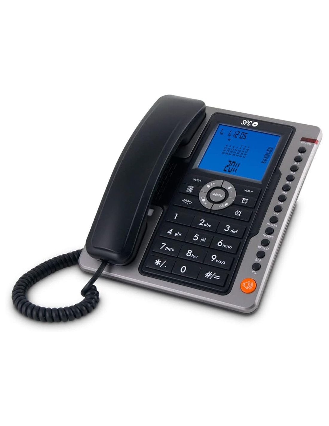 SPC Telefono Fijo Office Pro - Pantalla Iluminada Azul - Teclas Grandes - Memorias Directas - Manos Libres - Identificador de