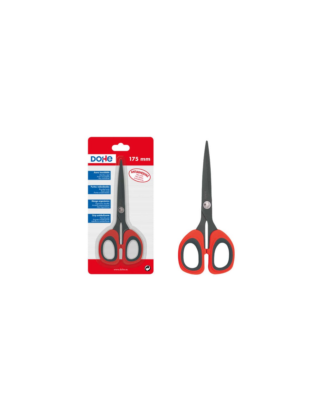Dohe Tijeras Antiadhesivas de Acero Inoxidable - Puntas Redondeadas - Mango Ergonomico de Plastico y Caucho - Blister