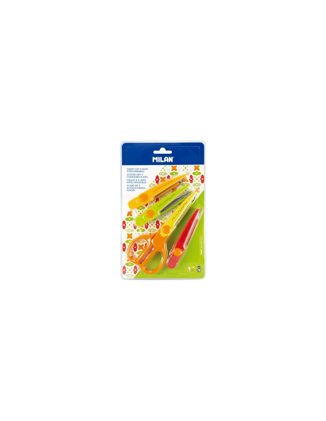 Milan Tijeras Zig-Zag con 4 Hojas Intercambiables - Recubierta de Plastico - Diferentes Patrones - Multicolor