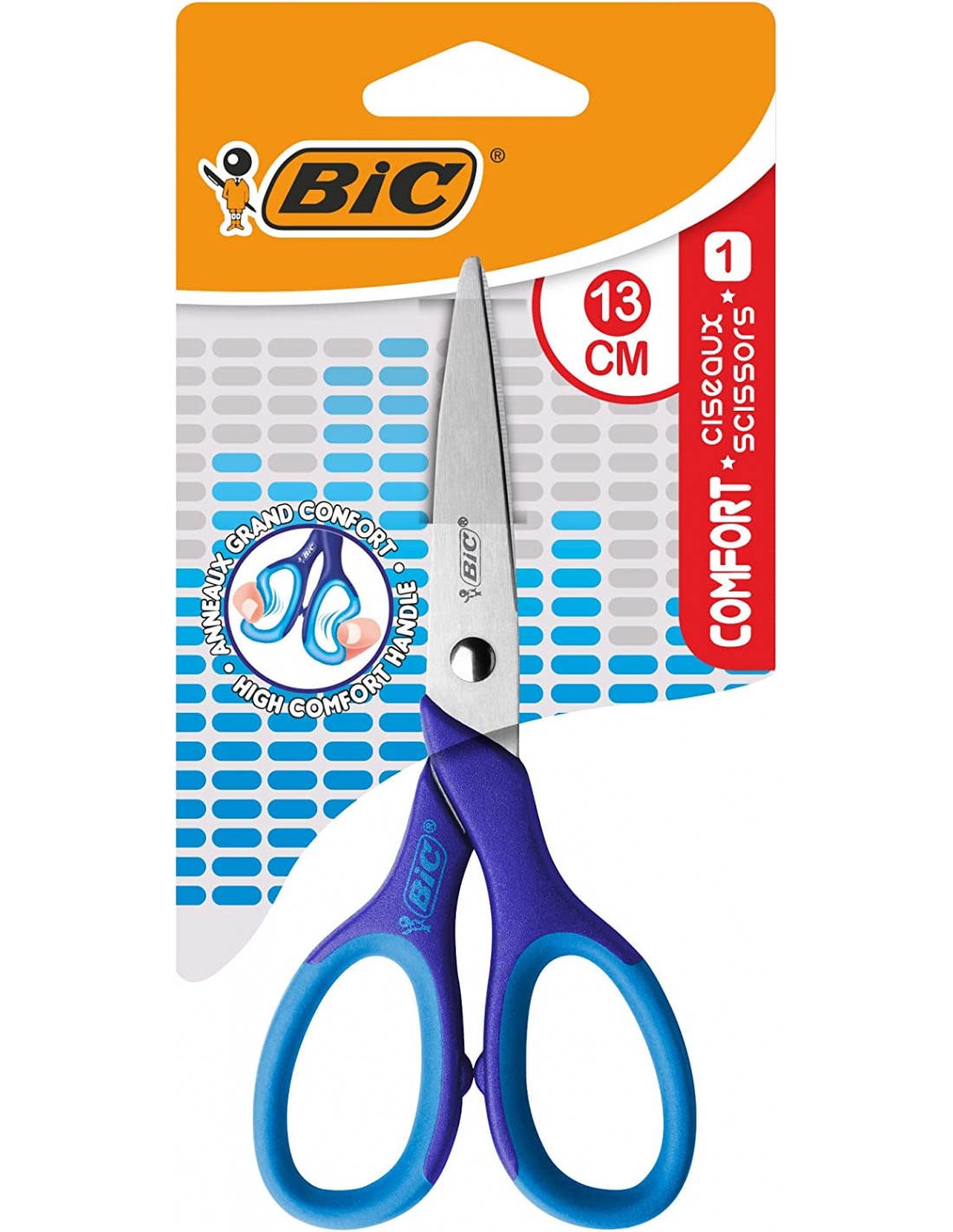 Bic Comfort Tijera Escolar 13cm - Mango Suave - Uso Diestro - Color Rosa-Azul Aleatorio