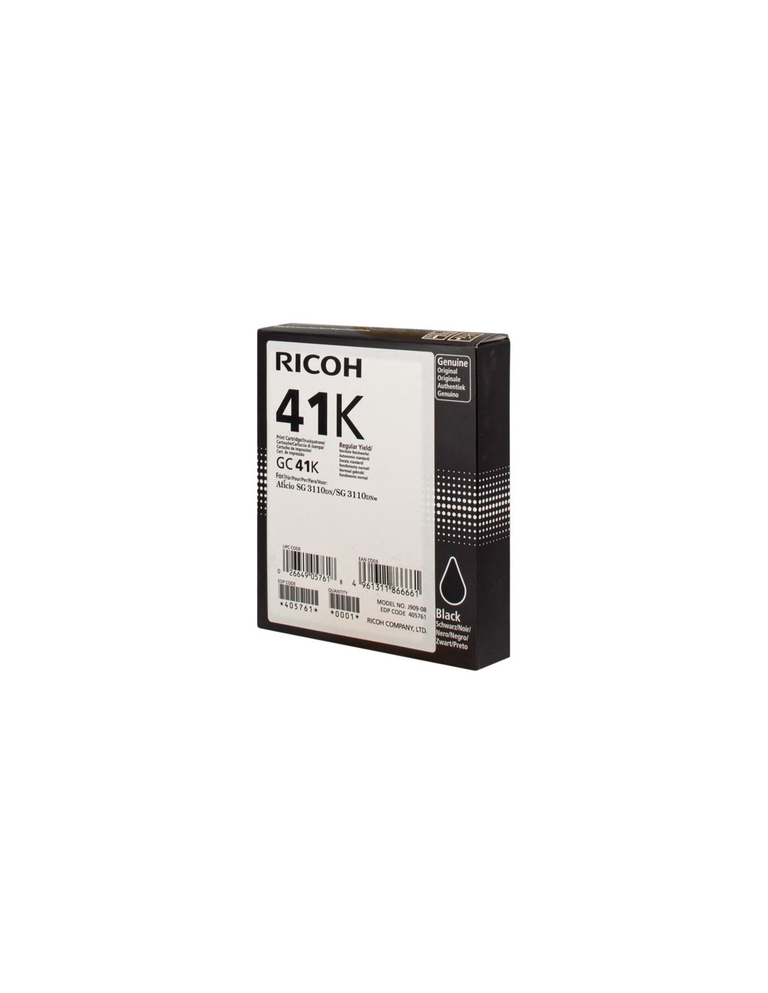 Cartucho de gel original Ricoh GC41 (405761) de alta calidad. Adecuado para uso en las siguientes impresoras: Ricoh Aficio SG 2100N Ricoh Aficio SG 2110N Ricoh Aficio SG 3110DN Ricoh Aficio SG 3110DNW Ricoh Aficio SG 7100DN Ricoh Aficio SG K3100DN Ricoh Aficio SG 3110SFNw Ricoh Aficio SG 3100SNw Ricoh Aficio SG 3110N Ricoh Aficio SG 3120 B SF Ricoh Aficio SG 3120 B SFN Ricoh Aficio SG 3120 B SFNw Rendimiento: 2.500 Páginas