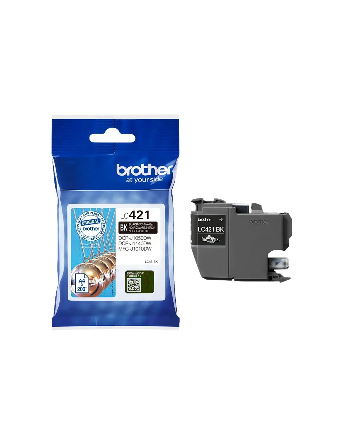 Cartucho de tinta original Brother LC421 (LC421BK) de alta calidad. Adecuado para uso en las siguientes impresoras: Brother DCP J1050DW Brother DCP J1140DW Brother MFC J1010DW Rendimiento: 200 Páginas